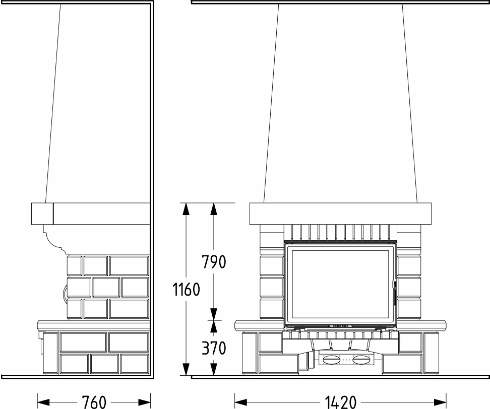 Цена указана за камин в стандартном исполнении (см. чертеж) из указанных материалов без топки.