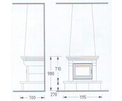 Цена указана за камин в стандартном исполнении (см. чертеж) из указанных материалов без топки.