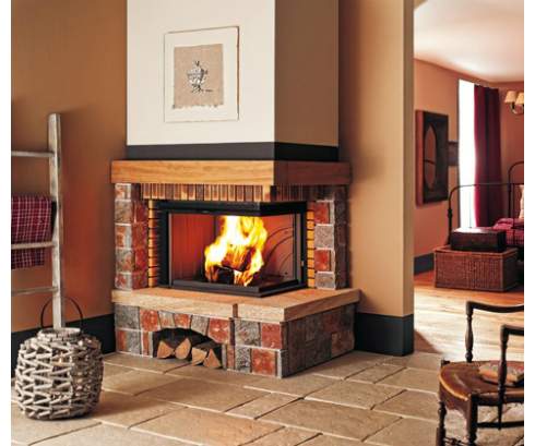 Натуральны теплые оттенки, угловое расположение и внушительные размеры отличат этот камин в стиле кантри. Модель Latour как нельзя лучше подходит для обогрева помещения. Открытая с двух сторон топка позволяет свободно любоваться огнем. Камин облицован камнем Кастильон и натуральным бутовым камнем разных цветов, балка изготовлена из дерева Ироко.