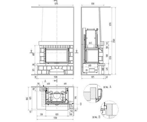 Цена указана за камин в стандартном исполнении (см. чертеж) из указанных материалов без топки.