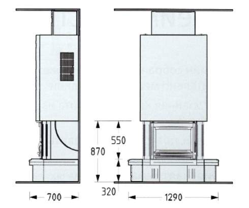 Цена указана за камин в стандартном исполнении (см. чертеж) из указанных материалов без топки.