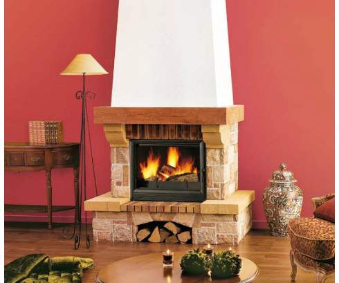 Фронтальный пристенный камин в стиле кантри от французской компании Supra производит впечатление надежности и комфорта. Модель Montavelle 67 изготовлена из камня дордонь и пастельного песчаника. Верхняя балка выполнена из дерева Ироко.
