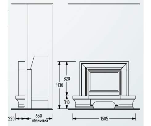 Цена указана за камин в стандартном исполнении (см. чертеж) из указанных материалов без топки.