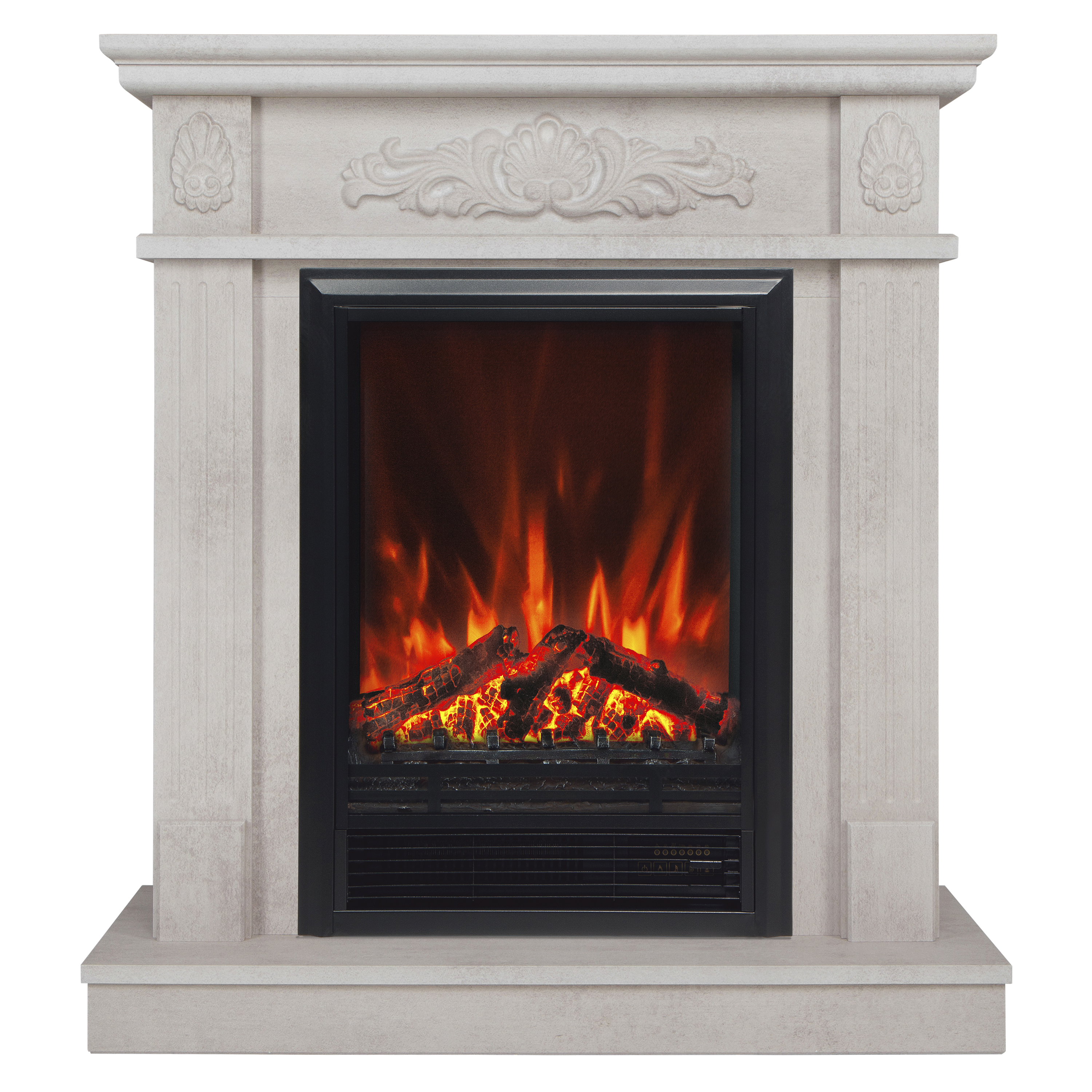 - Комплектуется многофункциональным очагом. Зеркальная стенка за муляжом дров визуально увеличивает глубину и создает впечатление трехмерности пламени. Звук потрескивания поленьев усиливает реалистичность восприятия. Выдув горячего воздуха в режиме обогрева осуществляется из нижней части очага. Режим автоматического затухания и разгорания дров (диммер).