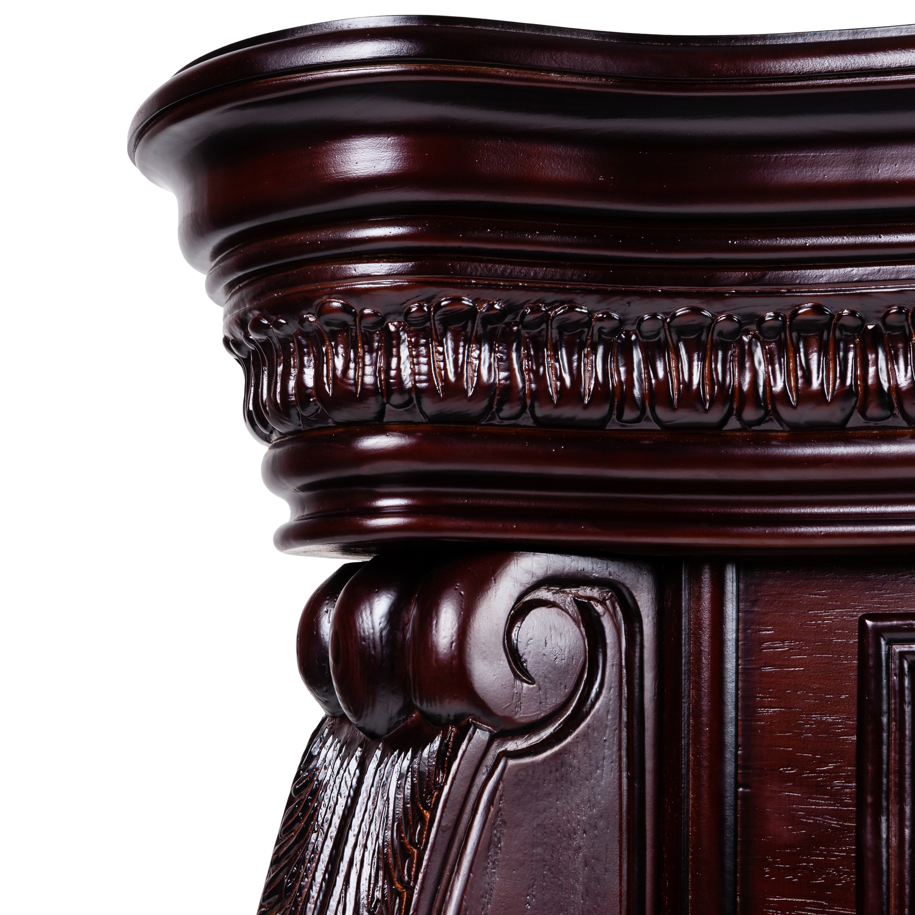 - Обрамление из МДФ и тонированного шпона. Украшен декоративными резными элементами по всей поверхности.