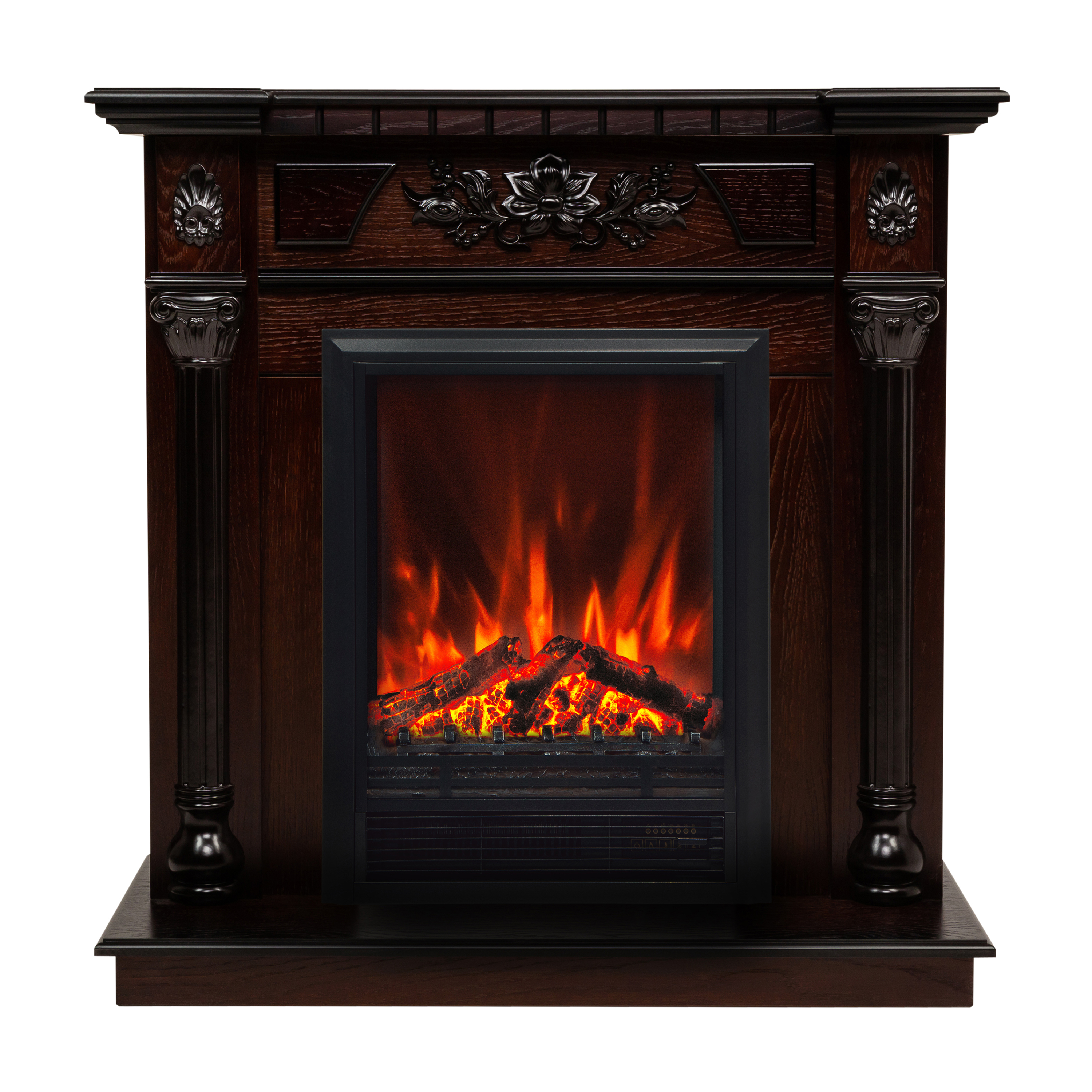 - Зеркальная стенка за муляжом дров визуально увеличивает глубину и создает впечатление трехмерности пламени. Звук потрескивания поленьев усиливает реалистичность восприятия. Выдув горячего воздуха в режиме обогрева осуществляется из нижней части очага.