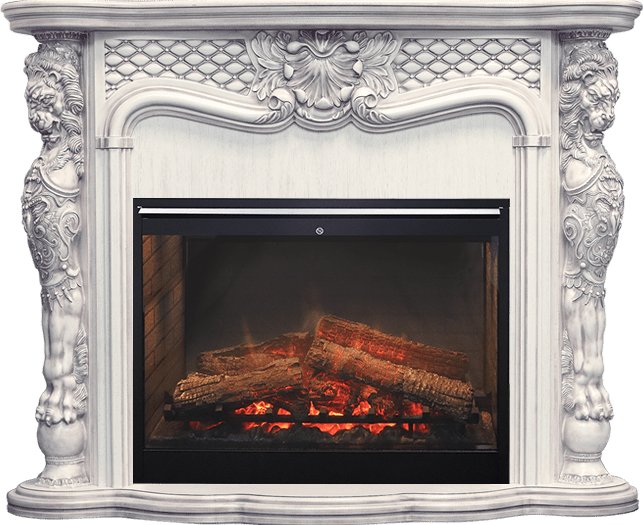 Каминокомплект Dimplex Castle выполнен в стиле барокко. Резной декор с оригинальными мифическими сюжетами и изящные линии конструкции придают модели старинный вид. Дополненный колоннами в виде львиных фигур, такой камин станет прекрасным приобретением для любителей богатых и необычных дизайнов.