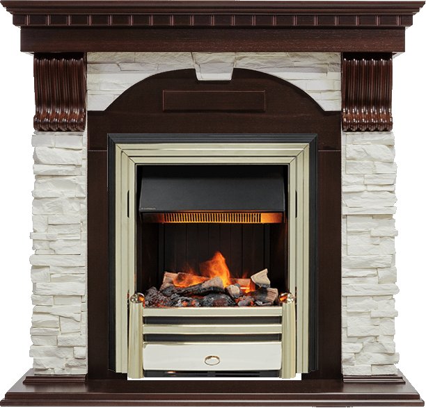 Электрокамин выполнен в золотом цвете. Золото – это материал, который никогда не выйдет из моды, это свидетельство безупречного вкуса и верности традициям. Цвет золота подчёркивает неповторимый стиль и необычность этого камина. К очагу можно подобрать любой портал, который подойдет к вашему интерьеру и станет его лаконичным продолжением. В очаге Dimplex Cavendish применяется эффект «живого» пламени Opti-Myst, в основу которого заложен инновационный принцип имитации огня - в очаге мерцает пламя, практически неотличимое от настоящего. В камине используется муляж дров ручной работы, которые невозможно отличить от настоящих поленьев, а благодаря подсветке создается полная имитация жарко пылающего очага.