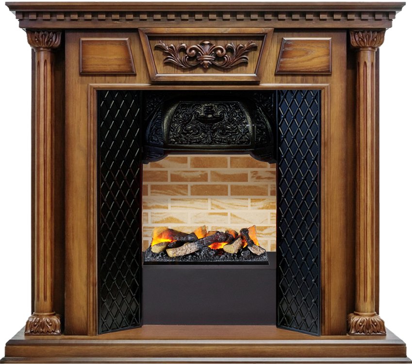 Каминокомплект Dimplex Olympia доступен в нескольких цветовых решениях. Колонны с резным рисунком и витиеватые вставки над очагом выполнены из массива дерева. Этот портал станет лучшим подарком для любителей мебели «с историей» и сторонников классической архитектуры.