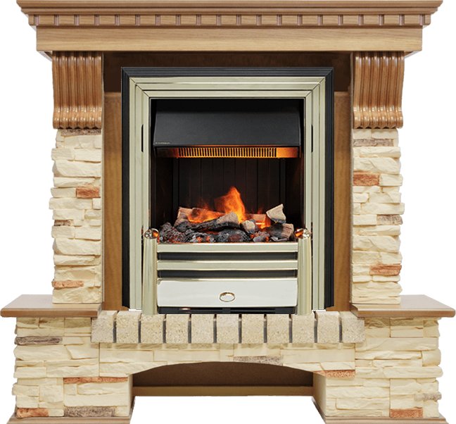 Электрокамин выполнен в золотом цвете. Золото – это материал, который никогда не выйдет из моды, это свидетельство безупречного вкуса и верности традициям. Цвет золота подчёркивает неповторимый стиль и необычность этого камина. К очагу можно подобрать любой портал, который подойдет к вашему интерьеру и станет его лаконичным продолжением. В очаге   Dimplex Cavendish  применяется эффект «живого» пламени Opti-Myst, в основу которого  заложен инновационный принцип имитации огня – в очаге  мерцает  пламя, практически неотличимое от настоящего. В камине используется муляж дров ручной работы, которые невозможно отличить от настоящих поленьев, а благодаря подсветке создается полная  имитация жарко пылающего очага.