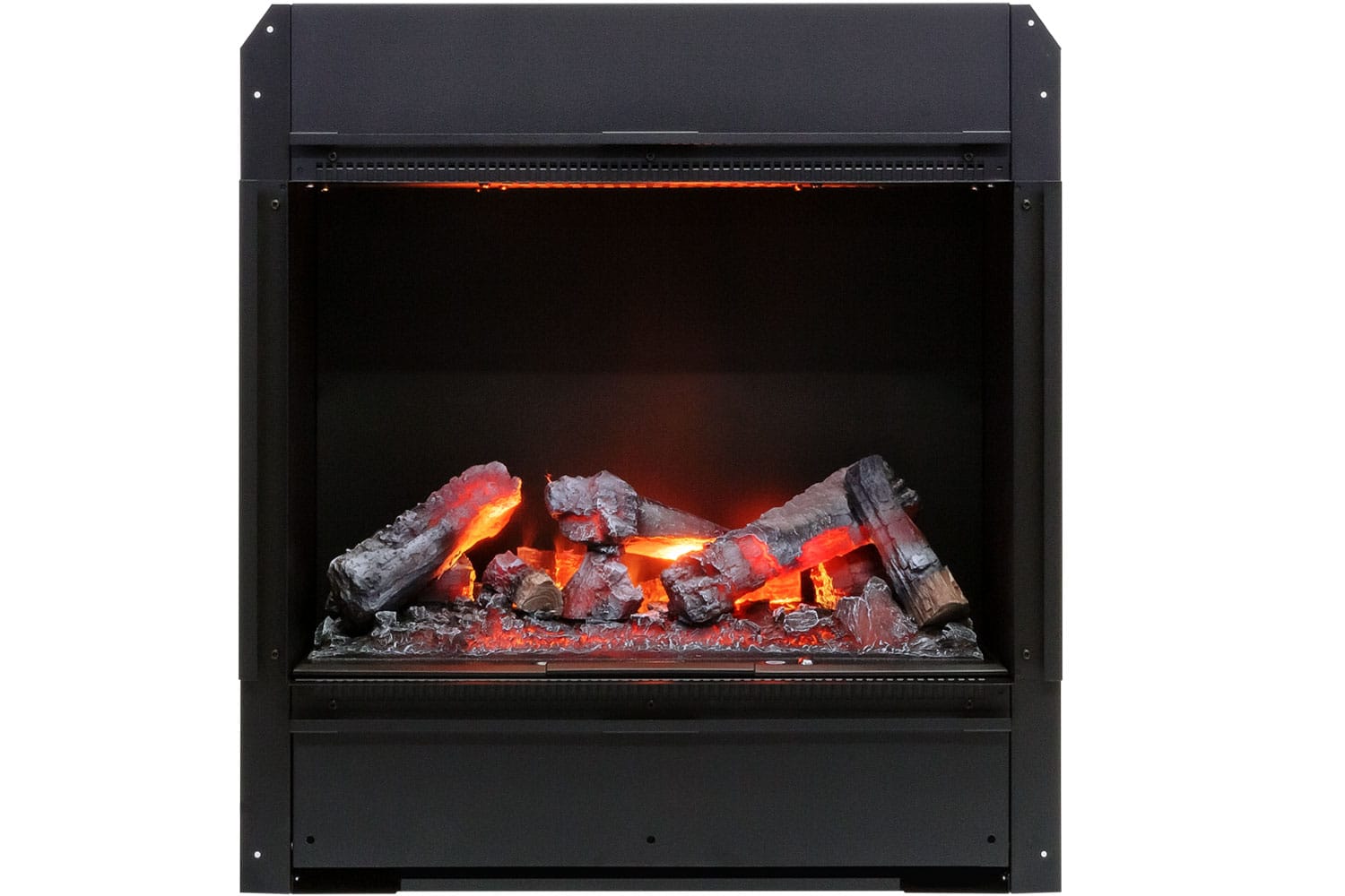 Цвет портала контрастирует с черным обрамлением очага Dimplex, оттеняя тем самым яркое пламя, которое невозможно отличить от настоящего. Единственное его отличие заключается в том, что оно не обжигает.