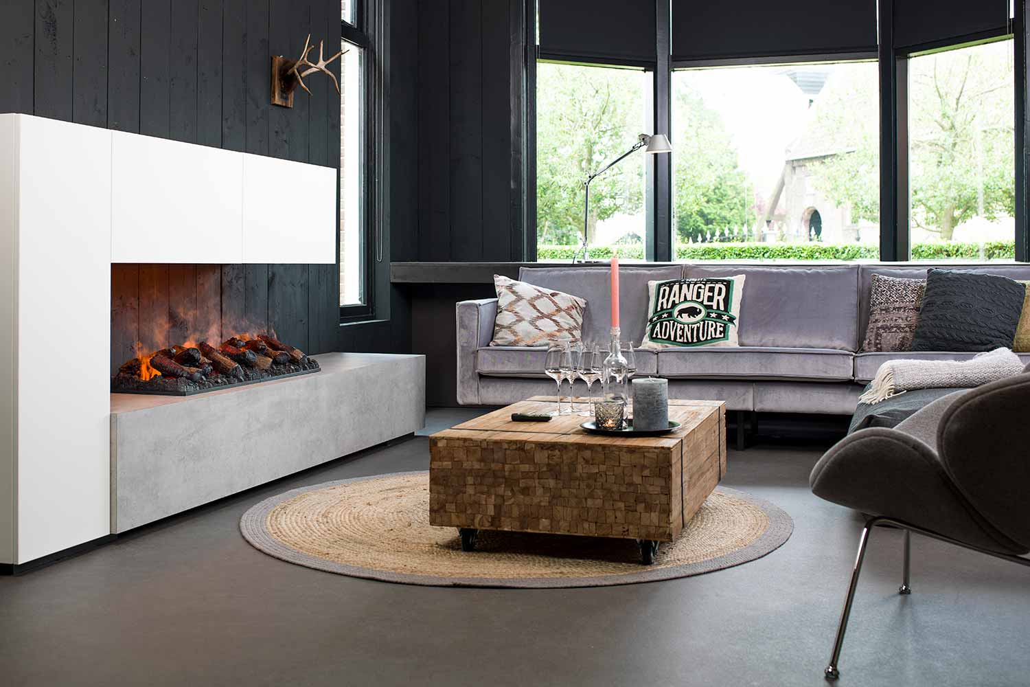 В очаге Cassette 1000 использованы реалистичные дрова со специальным покрытием, имитирующим горение дерева. Благодаря инновационному техническому решению камин работает на фильтрованной воде и может быть подключен напрямую к действующему водопроводу, что позволяет использовать камин длительное время без дозаправки.