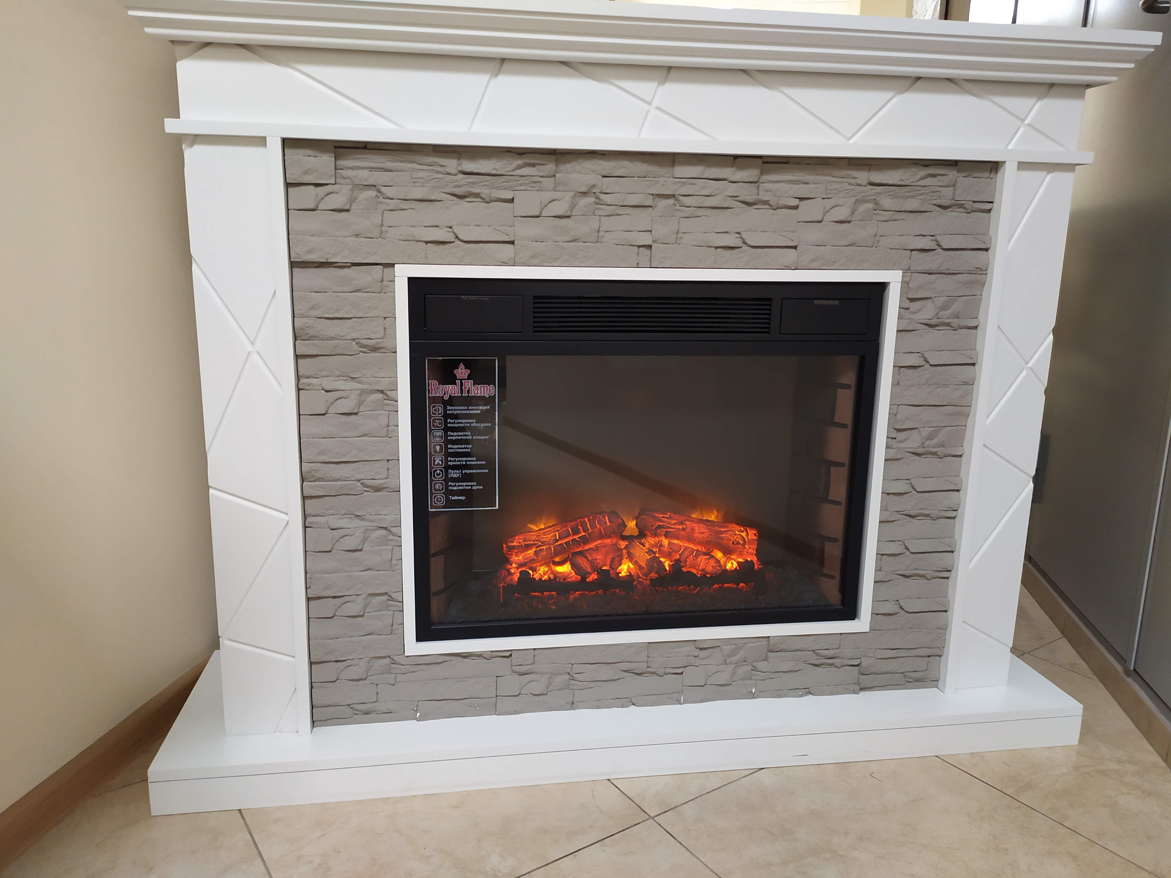 Портал сочетается с электрическими очагами от компании Royal Flame. Такой каминокомплект станет главным украшением комнаты и наполнит ее светом и теплом.