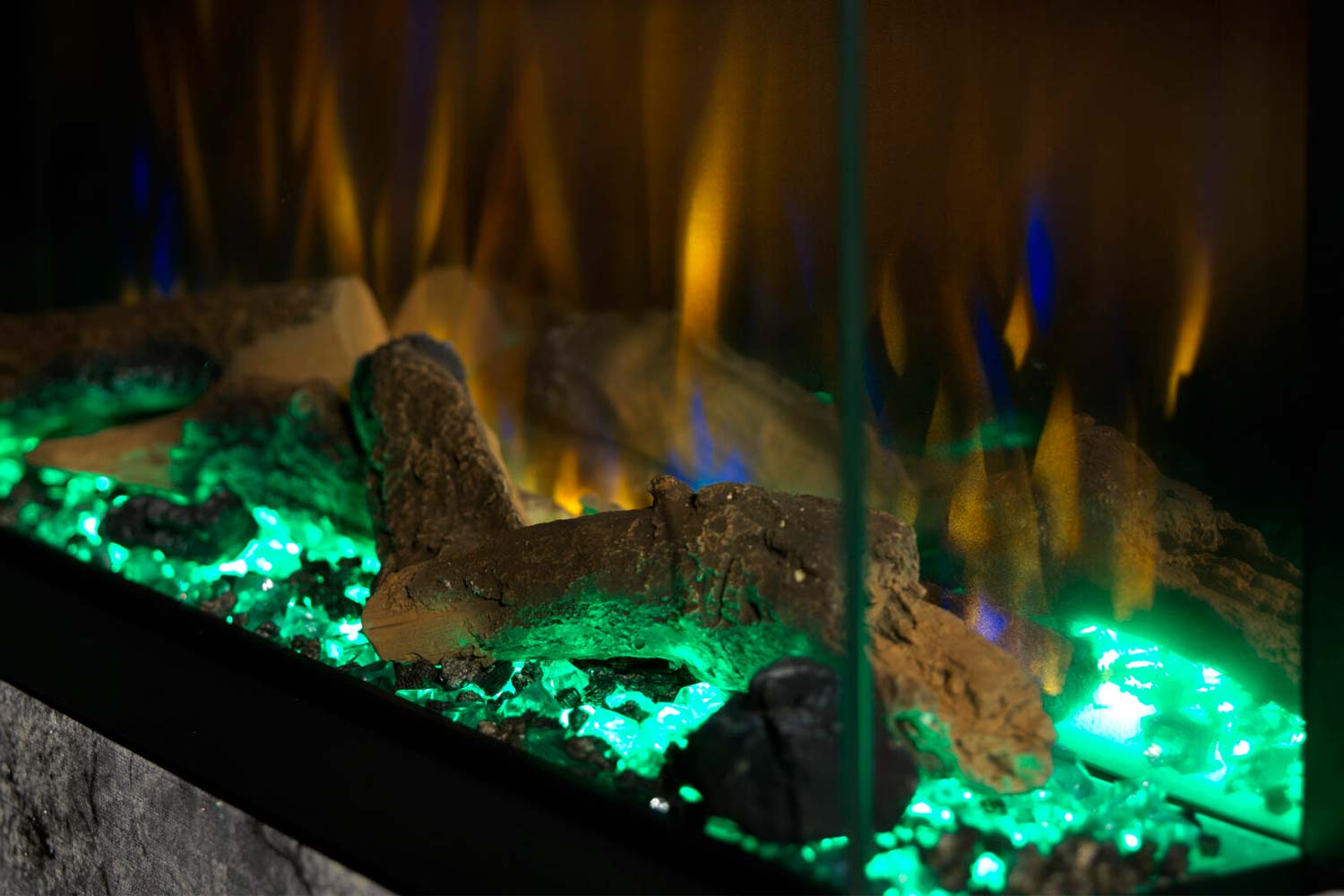 В очагах реализована опция выбора интенсивности пламени и цвета подсветки из 8 различных вариантов. Дополнительно предусмотрена функция автономного обогрева.