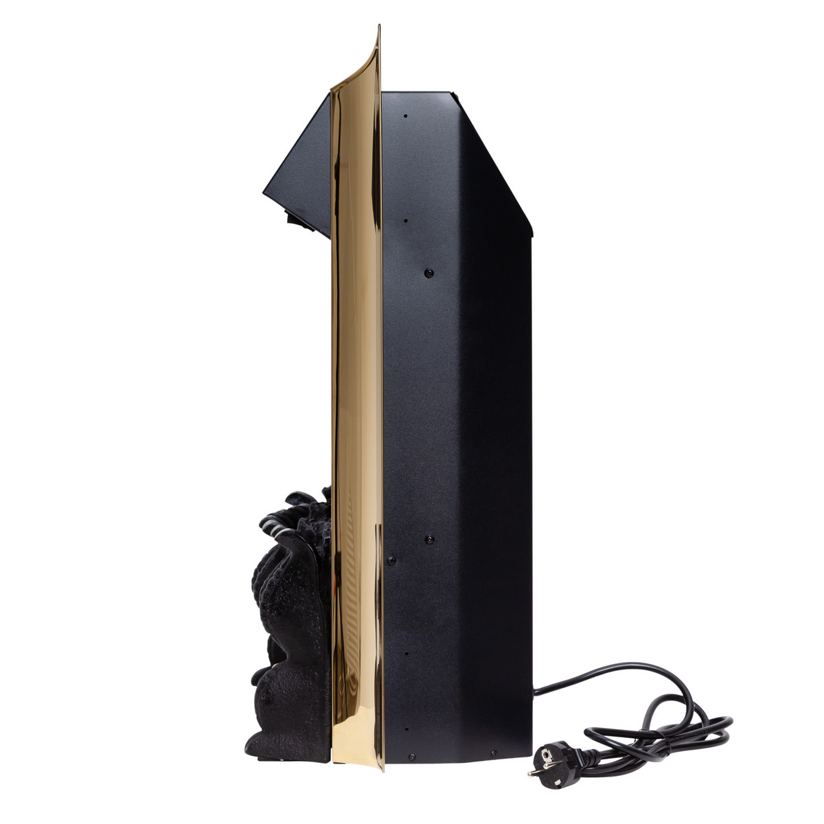 Электрический очаг Fobos Lux предназначен для встраивания в стандартные обрамления. В качестве муляжа - сгоревшие дрова. Нагреватель с поддувом спрятан в козырьке очага и обеспечивает обогрев в холодную погоду. Переключатель позволяет включать на полную (1 500 Вт) или половинную (750 Вт) мощность. В режиме визуализации пламени потребление электроэнергии составляет 80 Вт (две свечеобразные лампы E14 мощностью 40W)