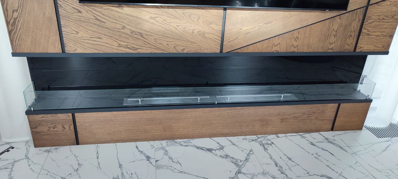 Рады Вам презентовать нашу новую работу и это - торцевой биокамин Firezo Estremità! Роскошный биокамин выполним по индивидуальным размерам с двойной линией огня на 1700мм, сам очаг 2000мм. Полный комплект: новый топливным блок, защитные стекла и стемалит.