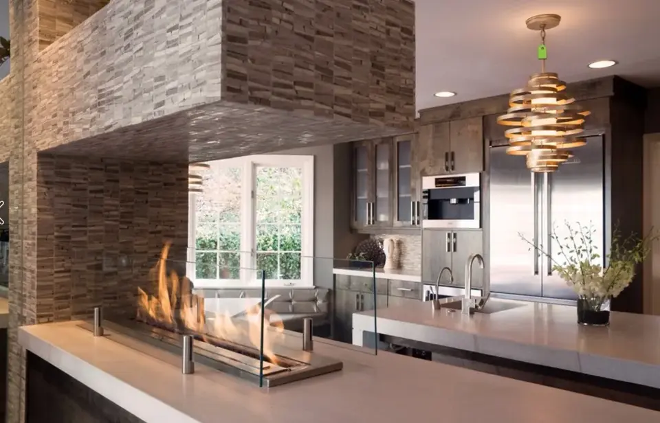 Кухонный стол с биокамином